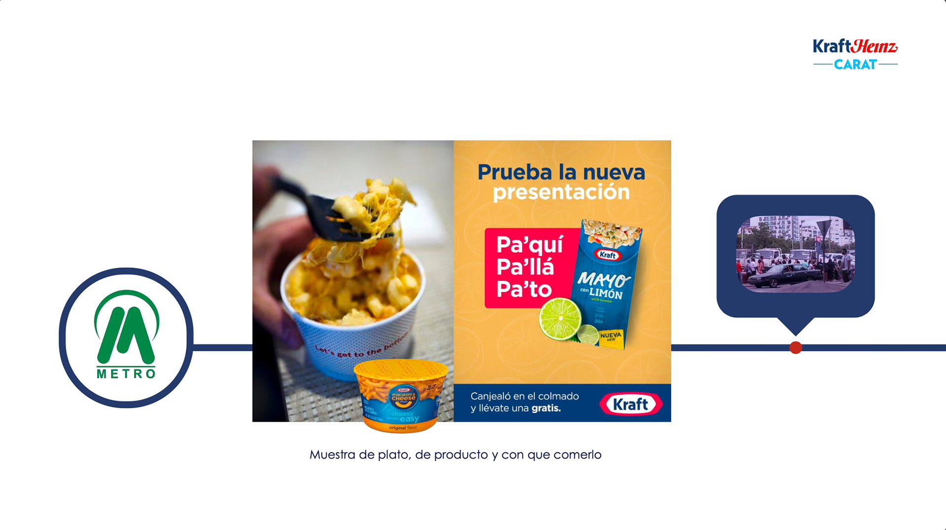 In metro lines, commuters would have sampled not only mayo sachets, but also bites of Kraft Mac & Cheese topped with mayo, tying two Kraft icons together in a single taste experience. Each sachet would include a coupon redeemable for another sachet at colmados.